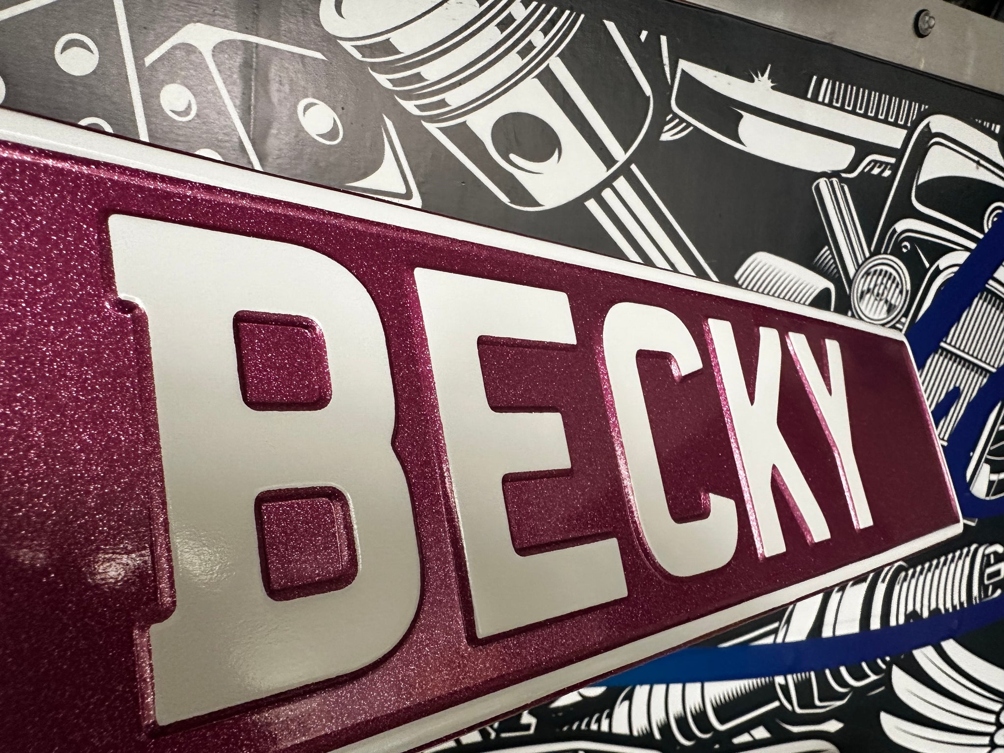 These are our premium quality coloured trucker plates.  Supplied in the plate colour shown, but customisable with your choice of font style, font colour and wording.