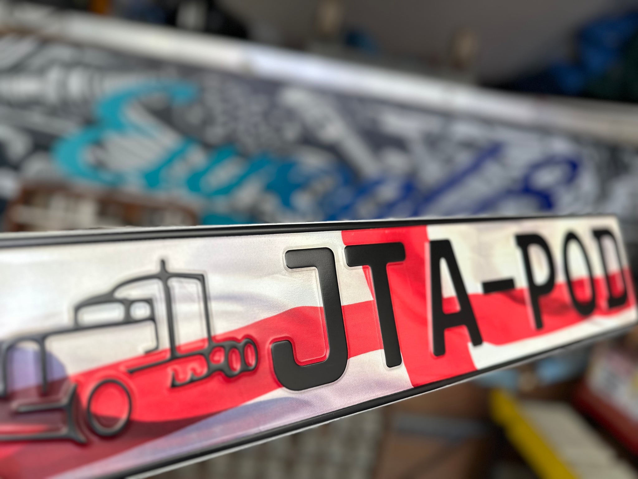 These are our premium quality coloured trucker plates. Supplied in the plate colour shown, but customisable with your choice of font style, font colour and wording.